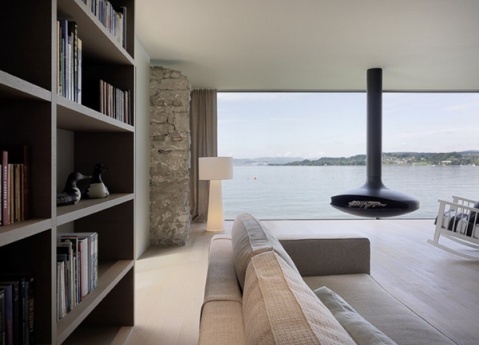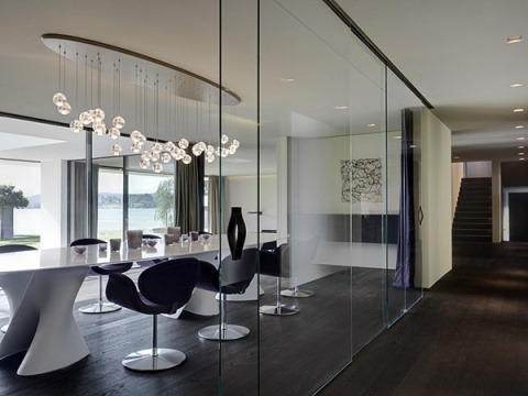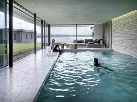 这是由瑞士建筑团队 Swiss Fine Line设计的一栋海边别墅,整个建筑两层楼面朝大海,全部以落地玻璃当墙壁,从建筑内部看,海景尽收眼底!除此之外,室内游泳池、摩登的壁炉、室内外起居室、面海的工作室,更是让人心旷神怡!有时间在这里度假真是享受啊!