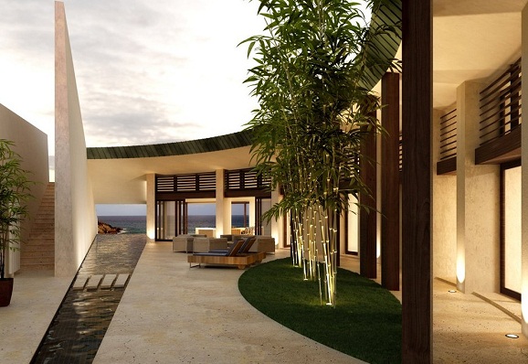 由于设计者的可持续和材料的哲学,项目的土方是平衡的,不会破坏场地之外的土。建筑材料模仿岩石的颜色和纹理,一直延伸到珊瑚海滩中。半地下的布置方式可以利用地热和混凝土结构的储热。