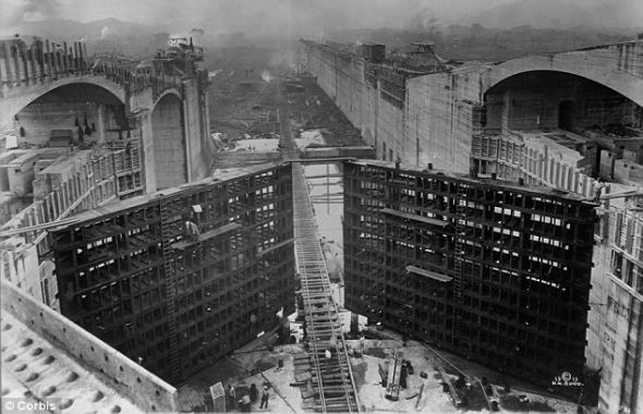 巴拿马运河建于1904年至1914年,不仅是连接大西洋和太平洋的黄金水道,还提升了运河本身的水位。令人惊讶的是,巴拿马运河两岸的海平面不同,而满潮水位也不同。为克服这一困难,设计人员建造了三个船闸,每道闸宽110英尺(约合33.5米)。船闸壁厚度不一,底部50英尺(约合15米),顶部10英尺(约合3米)。根据最初设计,巴拿马运河的年货物通过量为8000万吨,但今天,年货物通过量达到2.3亿吨。