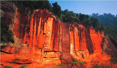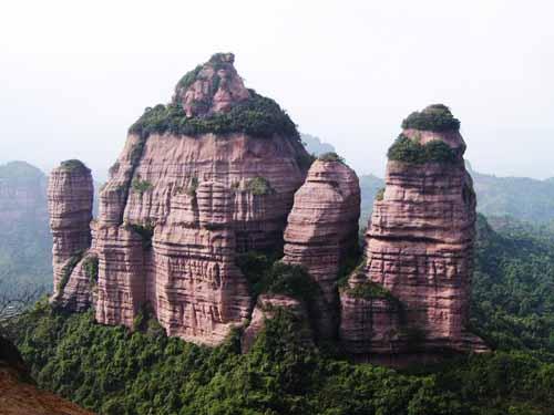 丹霞命名地:丹霞山位于湘、赣、粤三省交界处的仁化县境内,是世界“丹霞地貌命名地。丹霞山由680多座顶平、身陡、麓缓的红色砂砾岩石构成,“色如渥丹,灿若明霞”,以赤壁丹崖为特色。