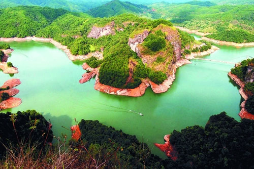 丹霞地貌最集中:在目前世界已发现1200多处丹霞地貌中,丹霞山是发育最典型、类型最齐全、造型最丰富、景色最优美的丹霞地貌集中分布区。夏日游丹霞,最讨好的方式莫过于翔龙湖觅幽。翔龙湖碧波如烟,湖面虽不宽阔,只是一条峡长的水道,四周巍峨耸立的一座座山峰,为湖景增色不少。坐船游湖是免不了的,虽是盛夏,湖上却很凉爽,有虫儿在岸边鸣叫,轻风拂面,无限惬意。