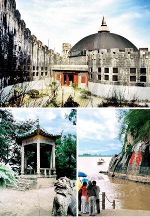 3.赤壁古战场纪念馆。 4.翼江亭,传说周瑜、诸葛亮观战之哨所。 5.赤壁山上的摩崖石刻。