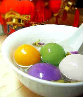 三、吃“元宵” 元宵节吃“元宵”是我国一项传统习俗。元宵又称汤圆,“元宵”作为食品,在我国由来已久。宋代,民间过元宵节即流行吃一种新奇的食品。这种食品,最早叫“ 浮元子”后称“元宵” ,生意人还美其名曰“元宝” 。 元宵以白糖、玫瑰、芝麻、豆沙、黄桂、核桃仁、果仁、枣泥等为馅,用糯米粉包成圆形,可荤可素,风味各异。可汤煮、油炸、蒸食,有团圆美满之意。每当正月十五,各地民众纷纷制作元宵,以庆贺佳节。 四、放烟花