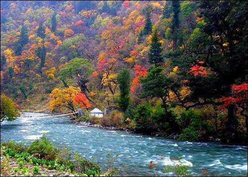 米亚罗风景区在四川省阿坝州理县境内,处于成都至九寨黄龙旅游线的中间,是我国目前发现并开放的面积最大、景色最壮观的红叶风景区。