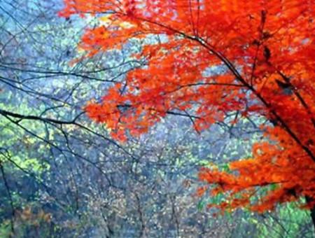 要看火红树叶,最好找生长位置是北风吹得到的树,例如悬崖边、空旷地等,位于山谷、低洼地区的枫、槭通常还来不及红,便已落叶。 |