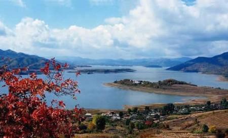 松花湖是吉林省最大的人工湖,两岸山峦叠嶂,林木繁盛,有多种天然林和红、白松等人工林杂处生长,秋天五色斑斓,最妙的是湖岛秋色,火红的枫树、橘红的橡树、金黄的落叶松、米黄的白桦树,处处色彩斑斓。松花湖湖面达500多平方公里,湖形狭长,宜于乘船赏秋。