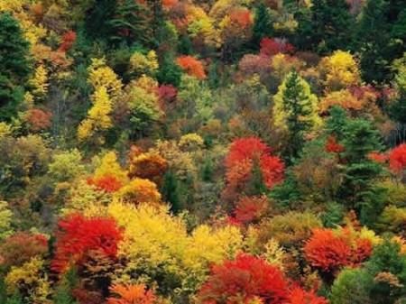 秋天,苍松墨绿、白桦流金。到了晚秋,山中各种树木,在严霜中五彩缤纷,形成了北国大兴安岭林区的独特景观――五花山。