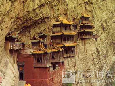 恒山如行很好地概括了恒山的气势。雄距塞北,群临旷野,恒山地处塞北高原之上,天气多晴朗之日,少云蒸雾缭之时,登高远眺,俯瞰近看,均能给人雄旷崇高之感。古人由此赞叹恒山“危峰过雁来秋色,万里黄沙散夕阳。”《笑傲江湖》中有恒山派,见性峰为恒山派总部所在。在令狐冲做恒山掌门前,恒山和峨眉山一样,也是女人山。悬空寺是恒山最为奇妙的建筑,令狐冲就是被哑婆婆绑在悬空寺。悬空寺靠西面东,俨若精巧、别致、玲珑剔透的玉雕悬于一幅巨大的屏风上。寺内共有殿宇楼阁40间。南北有三檐歇山顶危楼耸起,对峙而立,由低向高三层叠起,离地百余尺,附于绝壁上,三面环廊国抱、六座殿阁,相互交叉,飞架栈道相连,高低错落,木制楼梯沟通,迁回曲折,构思布局妙不可言、整个寺面似虚而实,似危而安,实中生巧,危里见俏,能让你体会到一种在国内其它寺庙体会不到的奇险感。