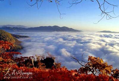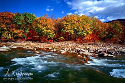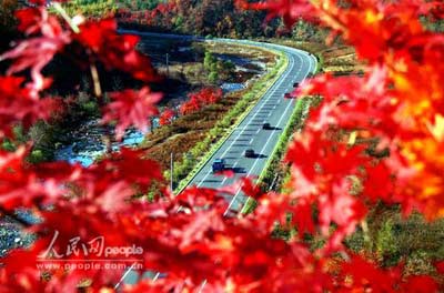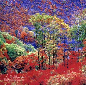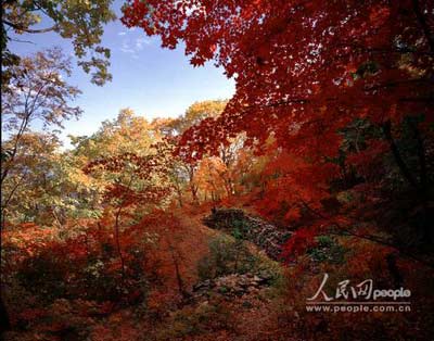 桓仁满族自治县位于辽宁省东部山区,隶属本溪市,森林覆盖率73.6%。每年的九月下旬,轻霜慢慢浸透山野,遍布诸山峰的枫叶象在表演一幕幕变脸戏,由山顶至山下,树冠开始由绿变黄,由黄变红,由红变紫,逐染群山,构成了一幅幅另人叹为观止的眩目“枫景”。