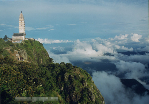 鸡足山气势磅礴,方圆百里,最高峰为天柱峰,海拔3240米,登临其山,可东观日出,南瞰浮云,西望苍山、洱海,北眺玉龙雪山,人称“绝顶四观”。山上松林茂密,修竹丛生,蜀汉时始建小庵,唐代扩建,兴盛于明清。有大小寺宇百余座,著名的是明代增建的悉檀寺、石钟寺、昆明金殿搬迁到此改称金顶寺。后来多数寺宇被毁,现仅存清代的祝圣寺、金顶寺大门和楞严塔。山间云雾缥缈,溪水琮琮,为中国佛教名山之一。