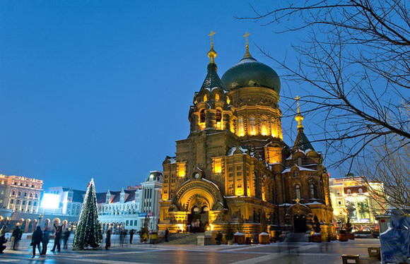 远东地区最大的东正教教堂坐落在哈尔滨---这座中国最有俄国风味的城市。20世纪初期日俄战争结束后,流亡的俄罗斯人建立了这座占地721平米,高54米的拜占庭式建筑,作为当地东正教团体的精神支柱。有20年的时间里,大教堂曾是中国共产党的存储仓库,现在它则作为一座国有的博物馆,向人们诉说着这座城市的建筑艺术和历史文化。