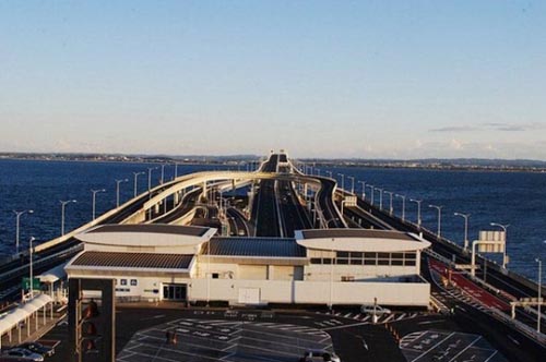 东京湾海萤看起来像横断线(Aqua Line)高速公路穿过东京湾但在水中停了下来。汽车从那里进入一条通往川崎的隧道。横断线将从神奈川县到千叶市的车程缩短了两小时,因为它绕开了东京市中心。驾车者在进入隧道前可将车泊在海萤岛上以享受海风吹拂,用餐或玩一会儿电子游戏。