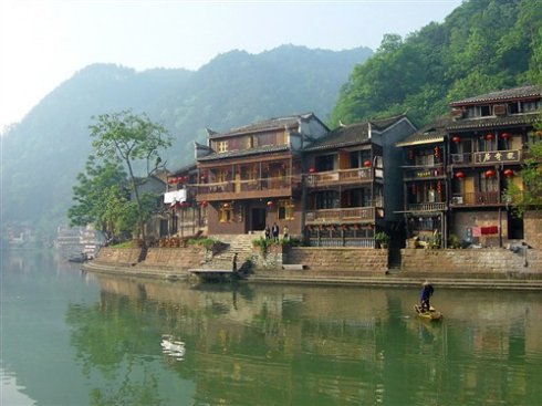 凤凰像一幅山水画,山青水秀、人杰地灵,完好的保留了苗族、土家族的建筑风格。静静的沱江穿城而过,江流舒缓、水平如镜,舟行款款,如滑动在琉璃之上。远处画桥如虹,飞阁垂檐,极尽清丽典雅之风致。两岸青山吐翠,城郭巍峨,悬楼吊脚,一并倒影在清流之中。城内,纵横交错的明清石板街斑斑驳驳,沉淀了凤凰商贾云集、文化荟萃的辉煌过去。戏台上,原始戏剧活化石傩堂戏与地方经典阳戏正轮番上演。或洗衣劳作、或讨价还价、或匆忙赶路的当地人,用韵味独特的湘西土话、苦辣咸酸的饮食习惯以及蜡染和银饰等格调清雅的民族工艺渲染着延续千年的湘西市井图。城外,熊希龄故居、沈从文墓地以及黄永玉的“多翠楼”都足以让你被凤凰得天独厚的灵气所折服。远眺天边,战火纷飞后遗世独立的明万历年间南方长城仍吐露着曾经的雄壮气势。