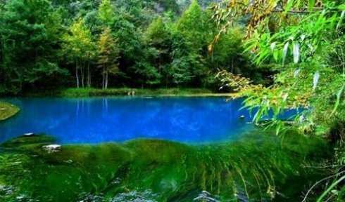 小七孔有一奇景——鸳鸯湖,鸳鸯湖湖水如油,碧绿而凝重。因湖中有两棵并排参天的大树而得名,这两颗大树半截在水中,枝叶则在上方交握,雌树纤巧秀丽,雄树则两三人才能环抱过来,雄壮挺拔。湖面幽静,水道四通八达。