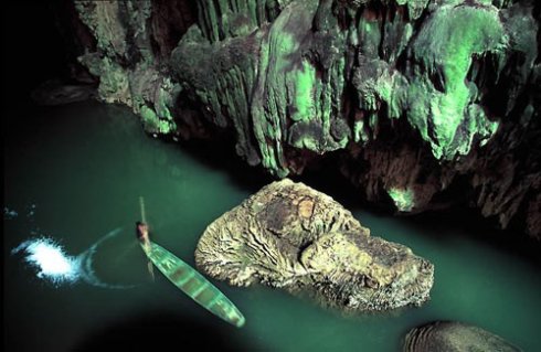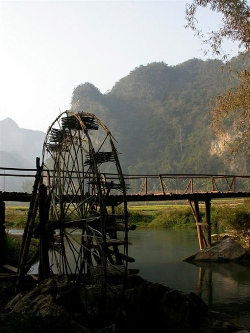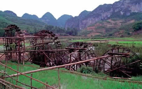 群山环绕中,撑着独木舟穿过两个天然的、几公里长的、幽暗的大水洞后,就有一个桃源仙境般的美丽壮寨充满你的视野,那就是坝美。坝美四周的山很大很高,而坝美却很小很低,站在后山看,坝美就像一个小巧、美丽、天然的盆景,又似一颗碧绿的珍珠。