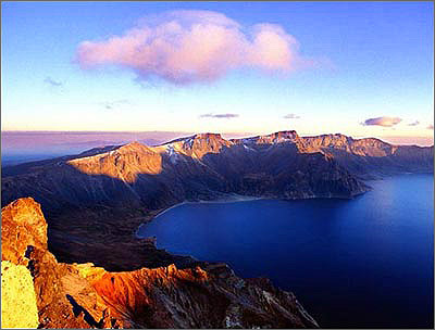 长白山天池又称白头山天池,坐落在吉林省东南部,是中国和朝鲜的界湖,湖的北部在吉林省境内。