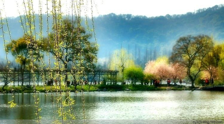 杭州西湖,是一处以秀丽清雅的湖光山色与璀璨丰蕴的文物古迹和文化艺术交融一体的国家级风景名胜区。她以秀丽的西湖为中心,三面云山,中涵碧水,沿湖地带绿荫环抱,山色葱茏,画桥烟柳,云树笼纱,逶迤群山之间,林泉秀美,溪涧幽深。西湖是一首诗,一幅天然图画,阳春三月,莺飞草长,苏白两堤,桃柳夹岸。两边是水波潋滟,游船点点,远处是山色空蒙,青黛含翠。烟柳笼纱中的莺啼,细雨迷蒙中的楼台,湖山沐晖,如入仙境。