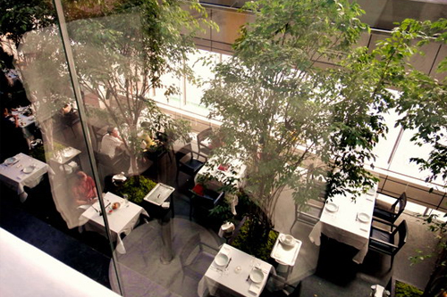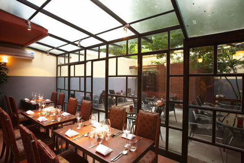 前门23号的几乎每一家餐厅都拥有别致的户外露台,同样优雅却又各有不同。意大利三乐意式餐厅的户外,有一棵硕大的树木,而餐桌就被摆放在树荫下。阳光恰好却又不会过于灼热。如同单独辟出的世外桃源。主厨在米兰的餐厅获得了米其林二星的荣誉,现在他将美好的意大利北部美食结合他独特的创造性手法一同带入北京。这里拥有优雅格调的玻璃天顶和树荫遮蔽下的露天座位。菜中的一道生牛肉carpaccio,选用牛里脊的部位,将帕玛臣芝士和奶油混合打成雪白的软酪状,并洒上来自阿尔巴的松露,独特的大地般的性感味道必会令你难忘。