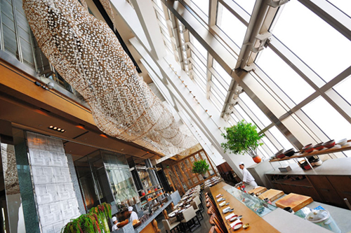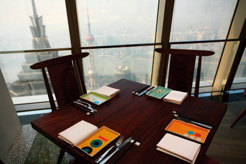 「城市里最高的餐厅」,要保持住这个头衔,不容易,因为这个高度总在被更新。不过,位于环球金融中心柏悦酒店的「世纪100」堪称真正的重量级,91至93楼!金茂的尖顶就在脚下。每周三次,都会有一大批鱼在清晨飞离日本,当天下午一点左右到达上海机场。同时,飞抵上海的还有来自美国纽约、华盛顿和西海岸的生蚝和澳大利亚的顶级和牛。这些食材的共同目的地就是世纪100餐厅。世纪100人气正旺,据说是在设计上展现了「中国式私人住宅」的理念所以在星级酒店中,属于相当个性的一款。不过个人认为它最特别的地方还是来自于地理位置的得天独厚——有谁不愿意在全上海最高的楼里住他一夜呢?而位于酒店最高层的世纪100,显然因此充满了卖点。餐厅空间高阔,设席三四百,节奏轻快的chill out音乐将这个巨大空间激活。40多种鱼生有季节性的,也有常年供应的,11月刚刚在日本上市的沙丁鱼当月就能在这里尝鲜。牛排专用的玻璃冷柜就摆在餐厅的一隅,很有肉感。有机南瓜汤、黑山猪排、散养春鸡、还有法国人在中国饲养的肥鸭肝通通写满菜单。世纪100将国际多元风格融会贯通,粤式烧鸭赢得不少赞誉。