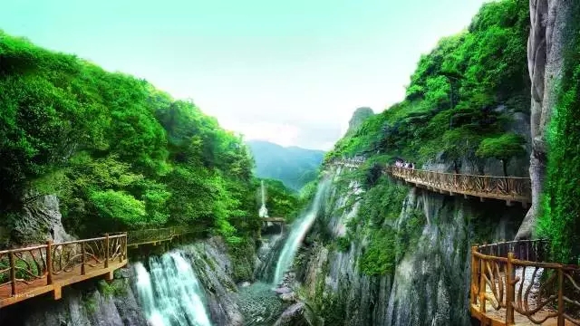牯牛降青山绿水相依,烟云变化无常,于险峻中见温柔,秀美中见恬静,奇幻中见优雅,生态环境极为优美。