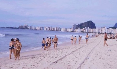 科巴卡巴纳海滩 被称为世界上最有名的海滩,海岸沿线长达4.5公里,海水蔚蓝,浪花雪白,沙滩洁净松软,加上终年气温适宜戏水,游人络绎不绝。近海处永远翻腾着大浪,蓝色的浪谷和白色的浪峰此消彼长,一次次涌来,在阳光下如同一幅幅鲜艳无比的油画。五彩缤纷的阳伞和五颜六色的游泳衣,把沙滩点缀得绚丽多姿,随处可见身材惹火的比基尼女郎也是里约海岸一景。