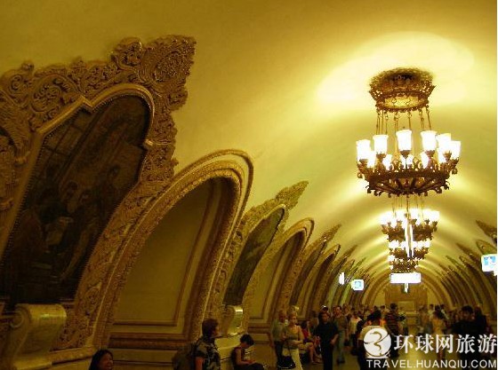 莫斯科早期建成的地铁站,宛如一座座地下艺术宫殿,其气魄之宏大、造型之华丽在世界上是少见的。每个站都经过建筑师和艺术家精心设计,铺以大理石的墙面和地面。