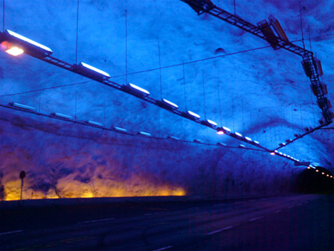 独特之处:驾车穿越一个如此长的隧道大约需要二三十分钟。在无窗的隧道里驾驶如此长时间,人们肯定会感到无聊和枯燥乏味,甚至会有一种疲倦的感觉,这是相当危险的。为了让驾驶者不至于枯燥乏味,一支由心理学家、建筑设计师和工程师组成的设计团队将这一重要因素考虑进设计方案之中。美国伊利诺斯大学城市与环境工程学教授约瑟夫-哈沙什解释说,“人们在隧道中的心理反应是非常重要的。对于这么长的隧道,设计者必须要认真考虑环境和灯光系统的设计。”在拉达尔隧道中,包括了许多独特的设计,如明亮的蓝色灯光和细微的弯曲变化,这些都可以让驾驶者不至于因为枯燥乏味而疲倦。最重要的是,这条隧道被分成了数个不同的部分,每个部分都有不同的外观设计,这样可以使驾驶者感觉是在一系列的较短隧道中穿行。
