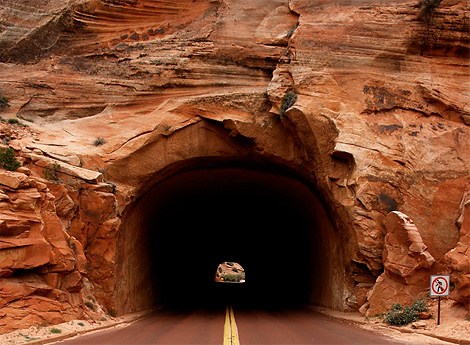 背景:这条隧道位于美国犹他州锡安山国家公园和布里斯峡谷国家公园之间。早在美国国家公园局成立之时,就已经开始建设这条隧道。1930年7月4日,锡安山卡梅尔隧道开通。