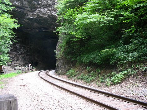 独特之处:天然隧道大约有200英尺(约合61米)宽,足够容纳一辆火车的通过。因此,美国南方铁路公司于1906年铺设了一条穿过天然隧道的客运铁路。这条铁路的轨道完全依据隧道的形状迂回前行。如今,客运列车已不再使用这条铁路,但是一些运煤的货运列车仍继续从天然隧道中呼啸而过。1896年的美国总统候选人威廉姆-詹宁斯-布莱恩曾经将天然隧道称为“世界第八大奇迹”。