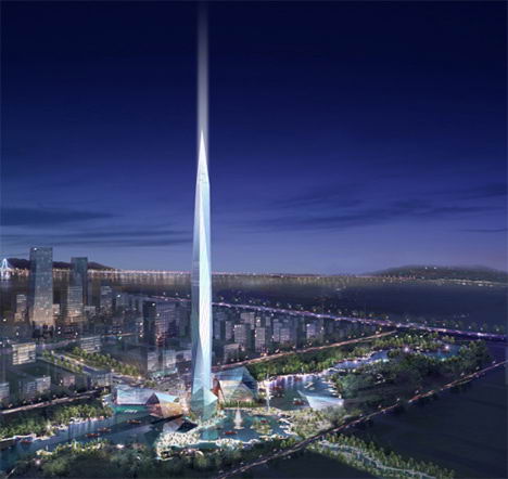 韩国希望之塔 韩国将迎来一座新的地标式高塔——被称之为“希望之塔”的青罗城市大厦。落成之后,这里将成为韩国的一个文化中心,同时也是一个大型城市开发项目的最大亮点。希望之塔高度将达到1476英尺(约合450米)。它就像一个倒转的冰锥直插天空,是世界上第二高观景台。