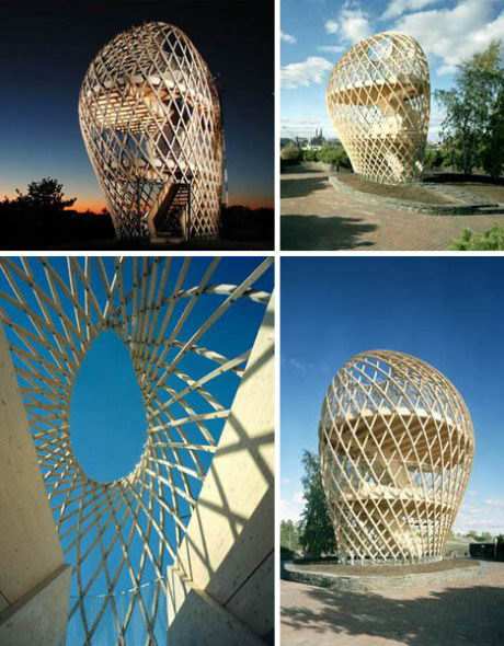 柯吉萨利瞭望台(Korkeasaari Lookout Tower)位于赫尔辛基柯吉萨利动物园,外观看上去像贝壳一样,这个木制结构是模仿动物藏身的自然巢穴所建,由72根弯曲的长木条组成,用600个螺栓连接固定。柯吉萨利瞭望台是威尔·哈拉(Ville Hara)的杰作。这一设计概念在柯吉萨利动物园嘹望塔设计大赛上胜出。
