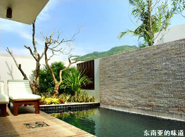 每间别墅的主卧室可通往私人游泳池,让人享有受遮蔽的露天空间的感觉。游泳池被高耸而像瀑布般倾泻而下的水墙所围绕,确保客人享有绝对私密的空间。