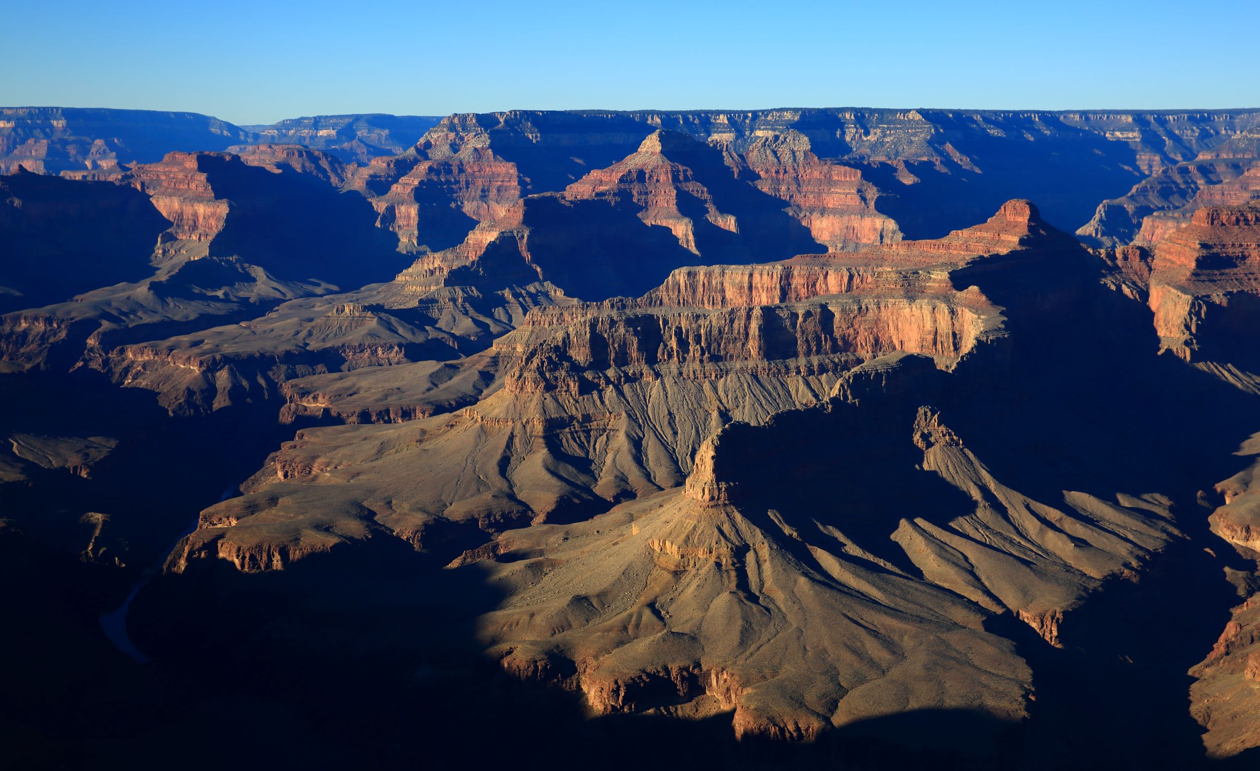 科罗拉多大峡谷的形状极不规则,大致呈东西走向,总长349公里,蜿蜒曲折,像一条桀骜不驯的巨蟒,匍伏于凯巴布高原之上。它的宽度在6公里至25公里之间,峡谷两岸北高南低,平均谷深1600米,谷底宽度762米。