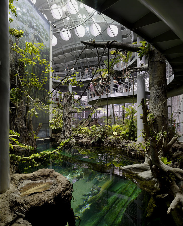 雨林公园内:一个曲折坡道让游客探索热带雨林的不同垂直水平带。