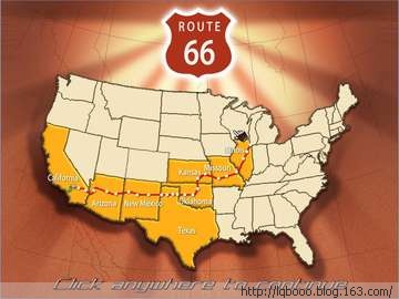 66号公路,曾属于美国公路系统,始建于1926年11月11日,于1938年才宣告全程完工。它起始于伊利诺伊州的芝加哥,穿越密苏里州,堪萨斯州,奥克拉荷马州,德克萨斯州,亚利桑那州,斜贯美国版图一直到加利福尼亚州的洛杉矶(后来延伸至圣蒙尼卡Santa Monica),跨八个州,三个时区,全长2450英里,约合3943公里。