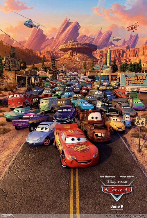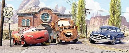 由迪士尼(Disney)与皮克斯(Pixar)两家动画公司合作的动画片《汽车总动员》(Cars),描述在一个拟人化的世界里,所有汽车都会说话、思考,有喜怒哀乐,主角“闪电麦坤”(Lightning McQueen)是个赛车界的新秀,想要在即将到来、于加州举行的活塞杯(Pistol Cup)大赛中一展身手,不料因为一场意外,误打误撞地来到位在“66号公路”(Route 66)上的没落小镇“水箱温泉镇”(Radiator Springs),开启了“闪电麦坤”奇异的生命旅程。