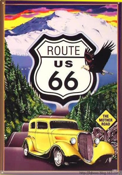 呈对角线的66号公路,从芝加哥一路横贯到加州圣塔蒙尼卡。 66号公路(Route 66),被美国人亲切地唤作“母亲之路”。66号公路全长: 2448英里(约3939公里)通车使用: 1926年11月11日——1985年6月27日,研究66号公路60多年的学者迈克尔·华利斯说:“66号公路之于美利坚民族,好比一面明镜;它象征着伟大的美国人民一路走来的艰辛历程。