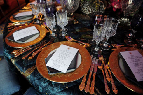 225名贵宾分别安排在三个大厅:国宴厅、蓝厅和红厅,随后所有人都到东厅娱乐。蓝厅和红厅都有大屏幕,可以看到相互祝酒。