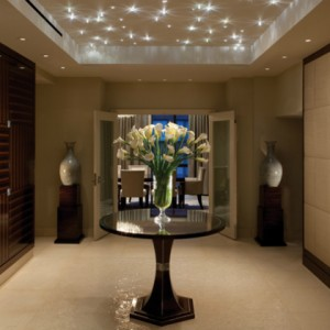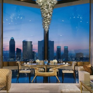 该套房位于时代华纳中心53楼,总统套房十分豪华和优雅。房间里都是新时代的设施与亚洲上等的丝绸和纺织品。