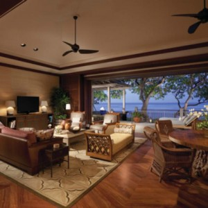 该套房是三居室的海滨别墅,提供超过5500平方英尺的面积。房间的大阳台可以俯瞰大海,也提供了供客人放松的漩涡浴缸和火山岩淋浴。你可以享受两次50分钟的免费按摩治疗,以及海边小屋和海滨椅子。