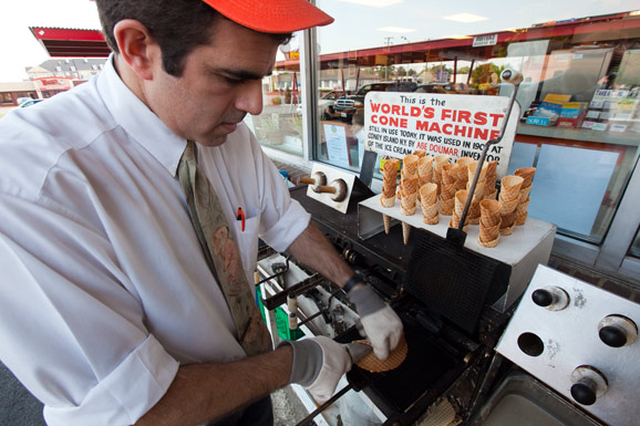 诺福克市的豆玛冰激凌店(Doumar''s)因艾比?豆玛在1904年的圣路易斯世界展览会上发明了美国第一支蛋卷冰激凌而闻名于世。尝一下百年蛋卷机做出来的冰激凌,还是那古老而甜蜜的味道。