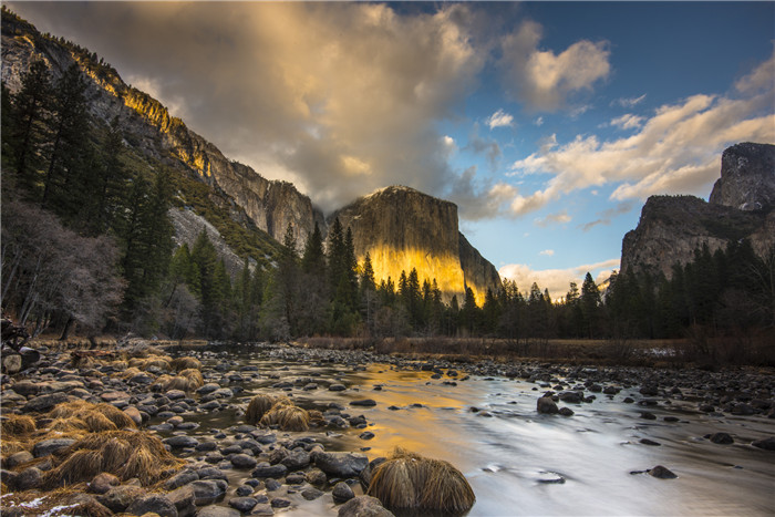 大自然的绝作之一,巍峨雄伟的花岗岩,气势磅礴的瀑布和宁静的山谷,巨木参天,高山流水,被冰川雕琢得嶙峋不堪的巨岩峭壁以及波光粼粼的湖面,优胜美地无论从任何一个角度都宛如仙境一般。