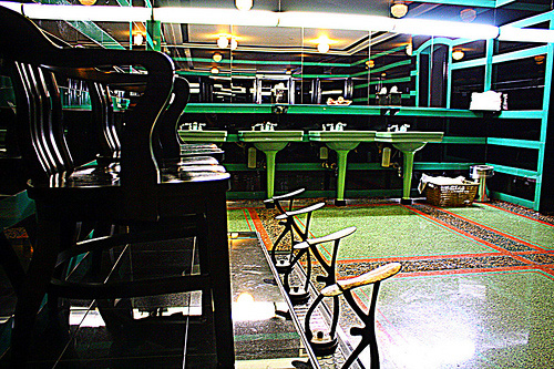 搽鞋座与浴室的陈设洋溢着复古的华丽