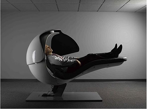 一款非常科幻的产品,由 MetroNap 公司生产。EnergyPod 能帮助使用者处于最优的姿势,促进血液循环,减轻背部下方的压力,减小周围的噪音,帮助使用者进入浅睡中。 EnergyPod 还能通过小幅的振动、灯光以及音乐唤醒使用者。