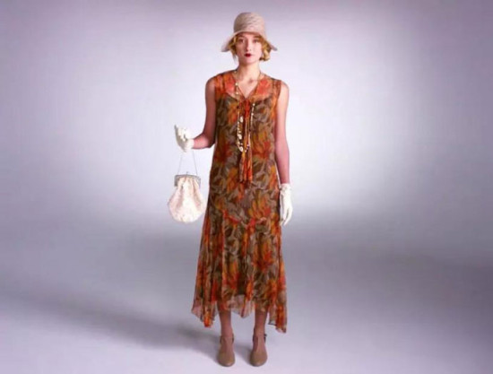 20年代是美国经济快速发展的时期,爵士乐风靡,很多俏皮女郎开始剪短发,衣服线条更宽松、有垂感。波浪卷、珍珠、小手袋.。.另外这个时候就已经流行T字鞋了,好时髦!