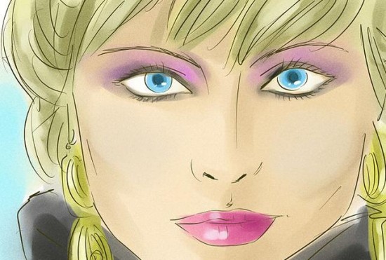 关键元素2:亮色妆。不仅要厚厚的腮红,亮蓝或者绿色的眼影一直涂到眉毛,超时髦女生还会涂上蓝色的睫毛膏和眼线膏。