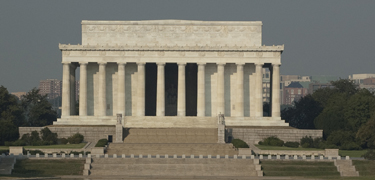 林肯纪念堂是为了纪念美国的第16任总统Abraham Lincoln。林肯是美国首位共和党籍的总统,积极推动废除奴隶制度,南北战争时期的北方领导人。林肯纪念堂于1922年完工,是希腊陶立克式的庙宇建筑,三十六根陶立克式的柱子象征林肯总统逝世的时候美国的三十六个州团结在一起。纪念堂的内部有林肯总统的巨大坐像,南北的两面墙上纂刻了总统的两篇最为著名的演讲稿:南北战争时期的演讲Gettysburg Address和他第二次当选总统时就职典礼上的发言。两篇演讲都是美国历史上最为著名和重要的演讲,充分表达了追求自由和人人平等的精神。林肯纪念堂前有两个总长度超过700米的倒映池,美国很多著名的集会都是在这里进行的。1963年8月28日,美国黑人运动领袖马丁·路德·金在纪念堂前发表了著名的演说《我有一个梦》。