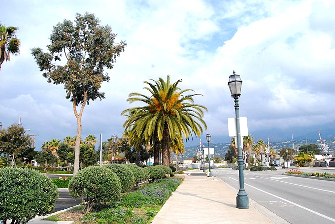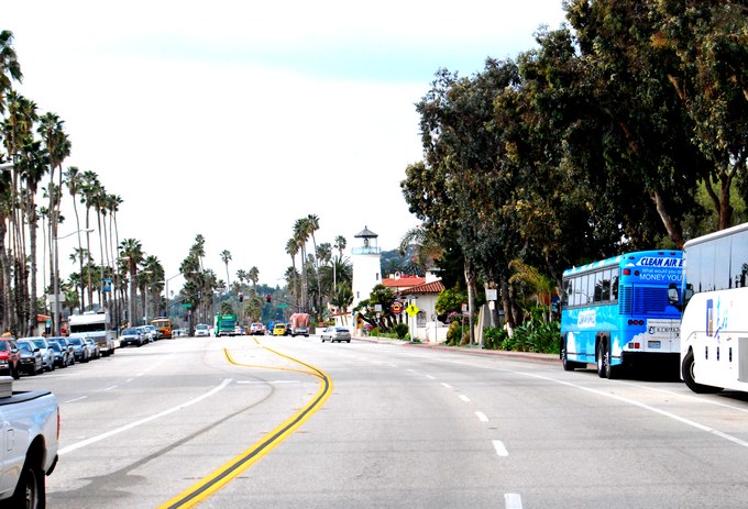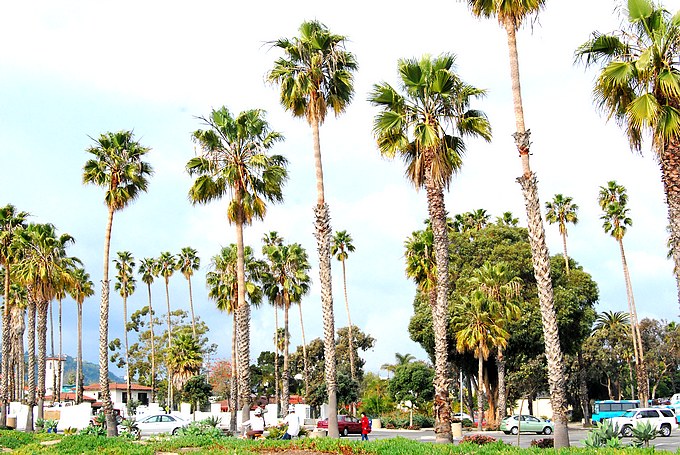 3. 著名的海滨小城圣芭芭拉(Santa Barbara),位于洛杉矶北130公里的1号公路旁。高高的棕榈树是圣巴巴拉的标志。圣芭芭拉人口仅9万,是富豪、明星们买房置业的清幽宝地,房价自然也是全美最高的地方之一。