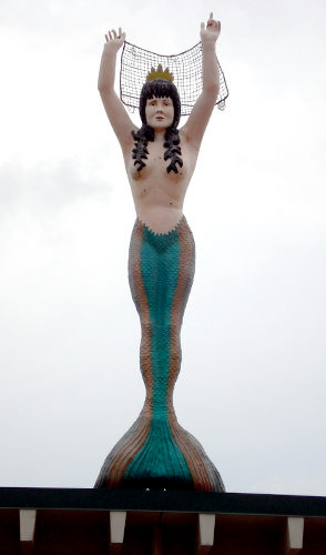这个高达30英尺的内陆美人鱼树立在一家“美人鱼餐厅”门口