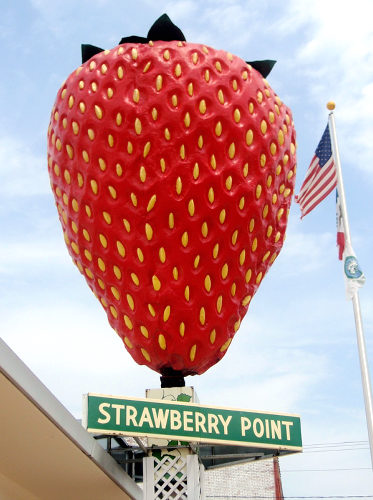 这个高达15英尺的草莓树立在美国爱荷华州小镇的市政厅门口,用来标识这个城市的名字“草莓”(Strawberry Point)